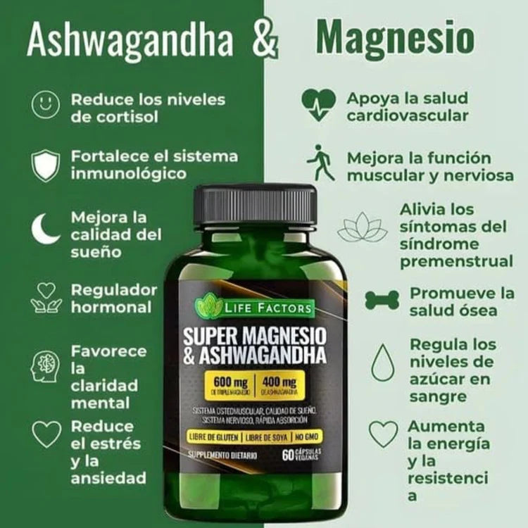 Life Factors Magnesio + Ashwagandha combina dos aliados naturales: